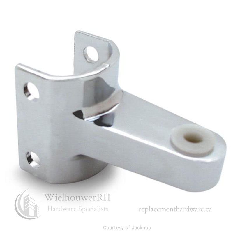 3910 Hinge Bracket Top.  For 1-1/4″ Round Edged Pilasters.  Compatible With General Partitions and Knickerbocker.  Cast Zamac, Polished Chrome Finish.  Used with 3420.